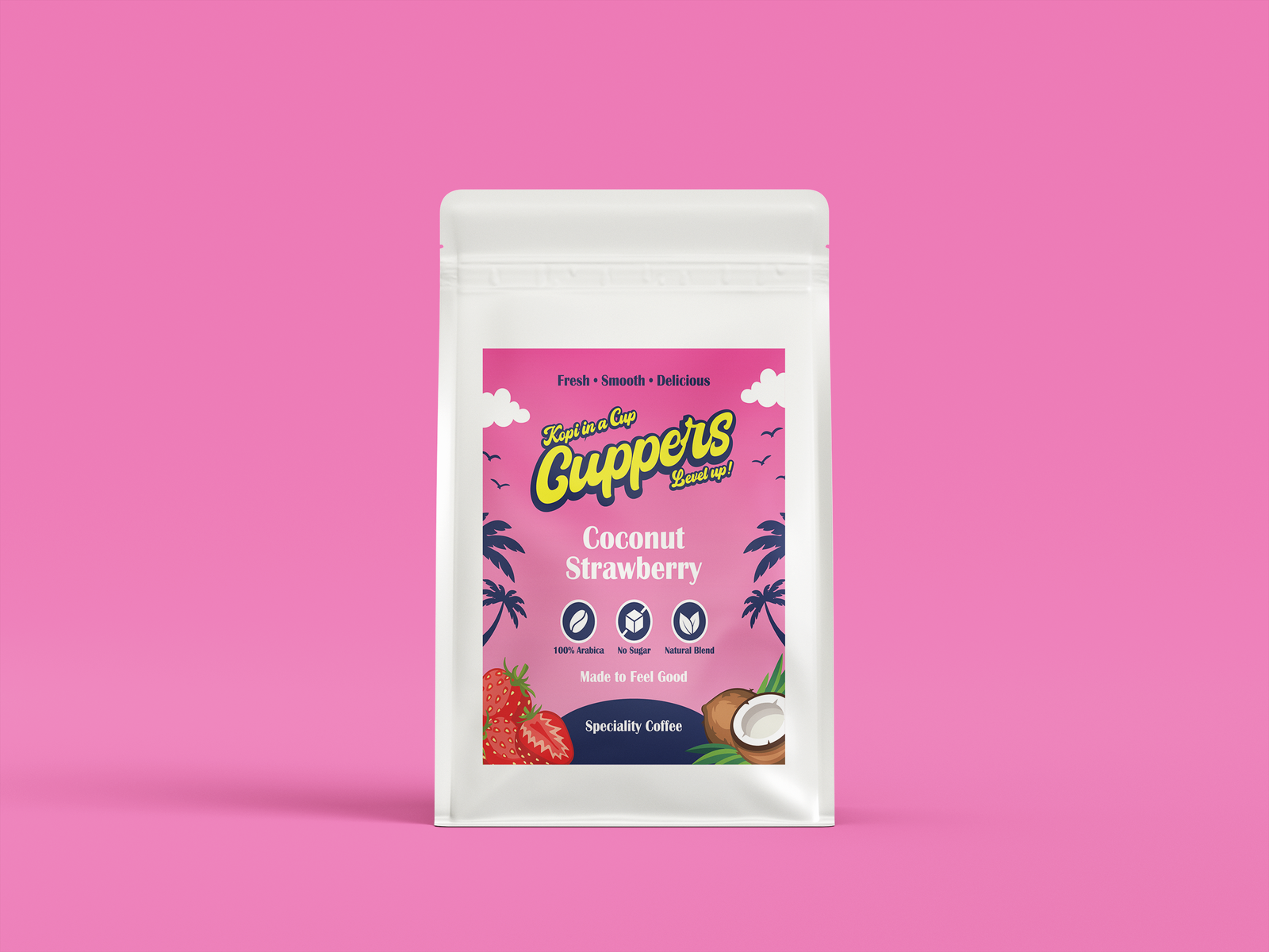 Sun, sea, and strawberries, a creamy, fruity blend that’s best enjoyed over ice. Every sip feels like a mini vacation.