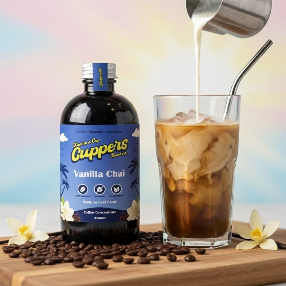 Mix 20ml of Cuppers Coffee Concentrate with 6–8 parts water, milk, or your favorite beverage. Adjust the ratio to match your taste preference.